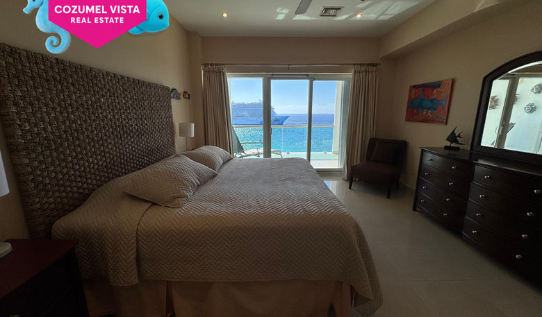 Enjoy natural light and panoramic seascapes from the open layout, private terrace, or master suite, perfect for sunrises and watching cruise ships pass by. The unit is in excellent condition, combining refined finishes with a relaxed coastal style.